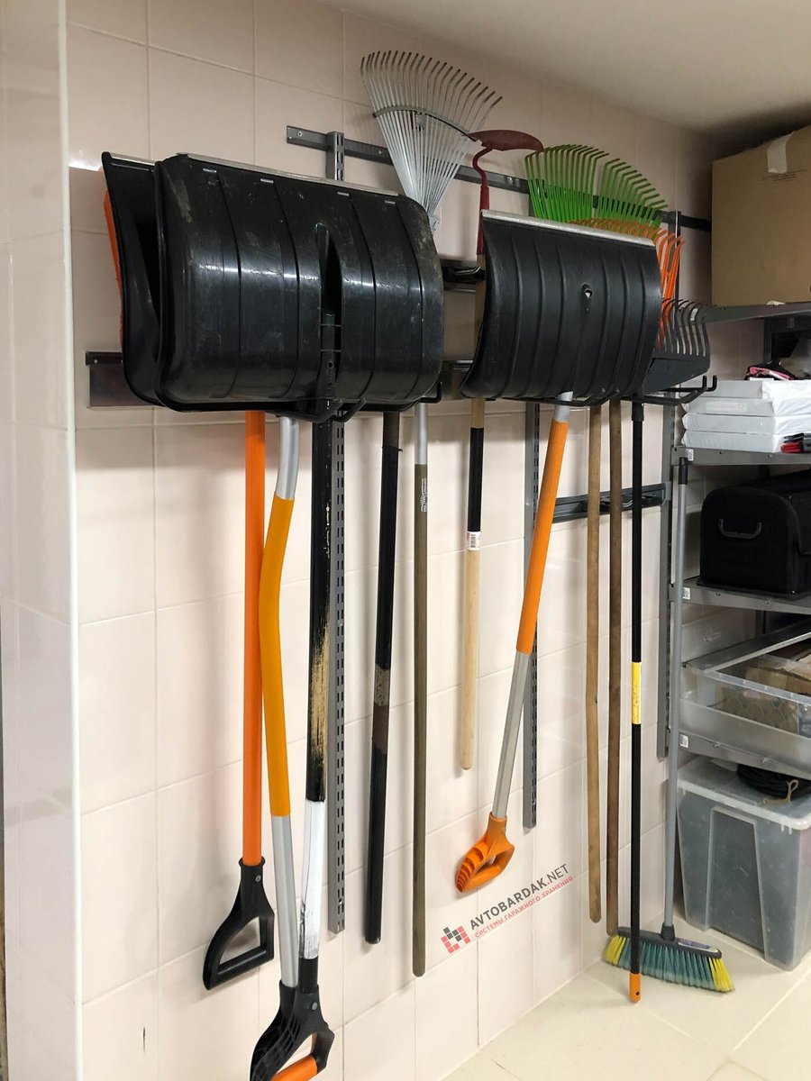 Крюк для подвеса лопат, грабель, других садовых и домашних инструментов.