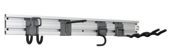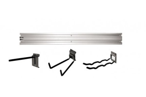 Преимущество рельсовых систем в том, что при снятии/надевании инструментов нагрузка равномерно распределяется по направляющей, что более надежно, чем крепление крюков непосредственно в стену.