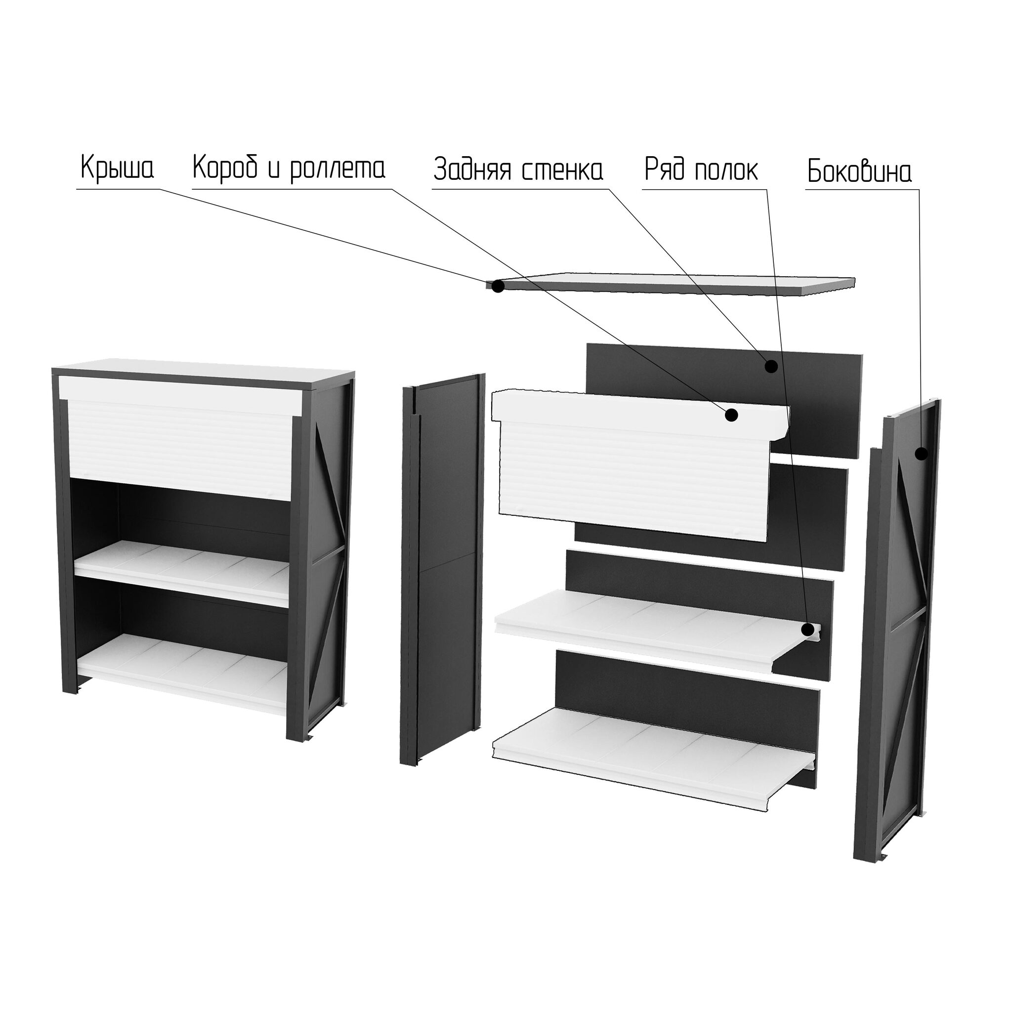 Полная инструкция сборки стеллажа с рольставней по ссылке.