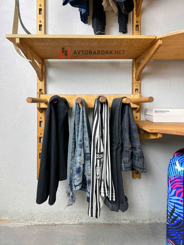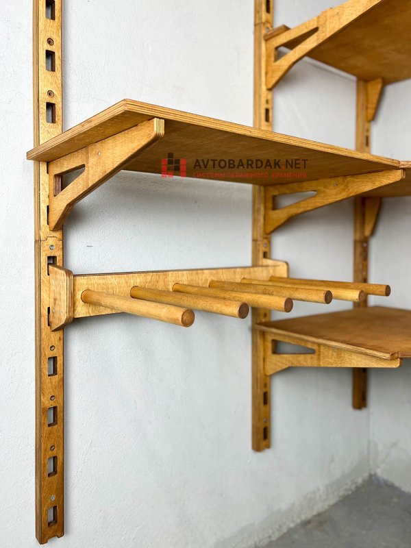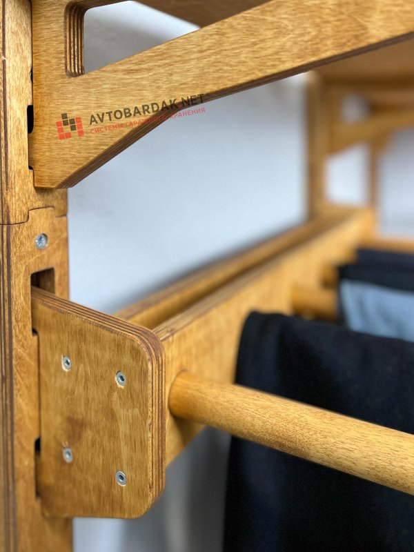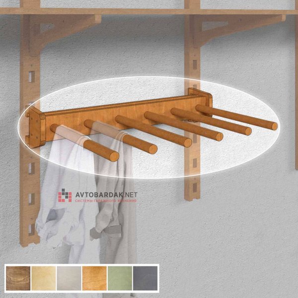 Система изготавливается из влагостойкой березовой фанеры марки ФК (марка фанеры с экологичным клеевым составом, предназначенная для использования в жилых помещениях) с покрытием маслом Варатан (США, параллельный импорт из Турции). Несколько базовых цветов всегда в наличии (орех, золотой махагон), под заказ мы сможем покрасить систему в цвет из палитры.