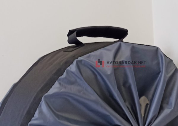 Ручка изготовлена из ременной стропы шириной 30 мм. Поверх ручки съемная мягкая накладка для удобства переноски тяжелых колес. Ручка усилена тентовым материалом ПВХ 600 с внутренней части чехла, чтобы не отрывалась во время переноски тяжелых колес.