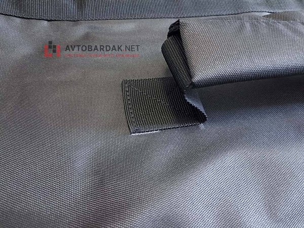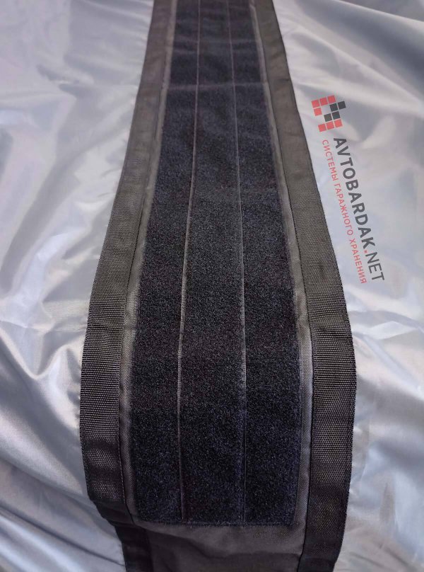 Открывание, закрывание, затягивание чехла. На ободе чехла застежка на контактную ленту "Велькро" шириной 50 мм (4 параллельные полосы) позволяет регулировать объем чехла и плотно вмещать колеса диаметром от 600 до 800 мм. По длинным сторонам боковин чехла кулисы для затягивания чехла с помощью плетеного шнура диаметром 4 мм с пластиковым фиксатором.