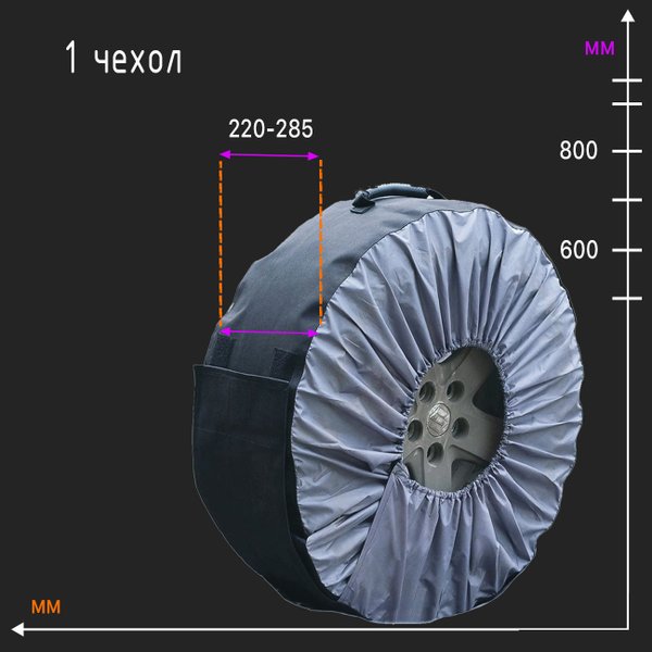 Обращаем Ваше внимание, что в нашем ассортименте есть чехлы "Гиганты" для колес, которые в диаметре больше 800 мм и по ширине превышающие 285 мм.