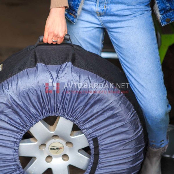 Чехол застегивается на липучках, боковины так же утягиваются липучками. Ручка выдерживает шину до 25 кг. Обращаем внимание, что у нас есть более грузоподъемные чехлы, которые выдерживают вес колеса с диском нагрузкой до 70 кг. Грузоподъемные чехлы вы найдете по ссылке.