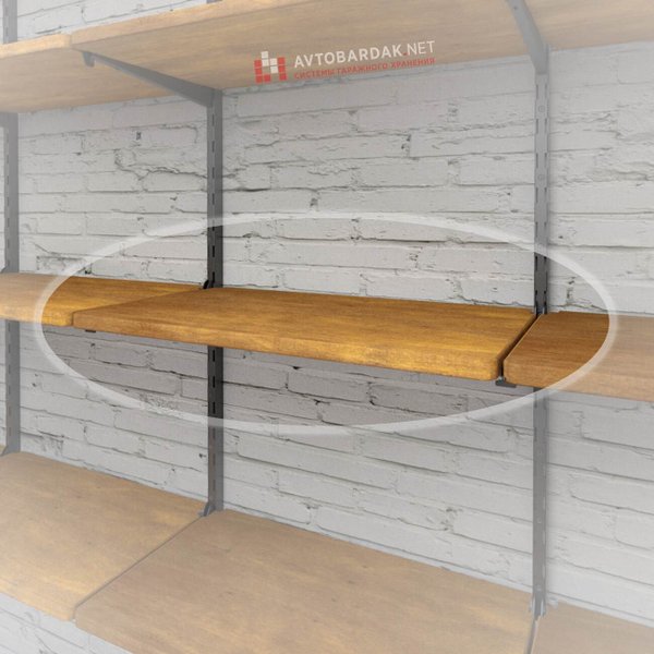 Полка устанавливается на два кронштейна. Если деревянные полки стыкуются между собой в горизонтальном ряду, на месте стыка используется один кронштейн.