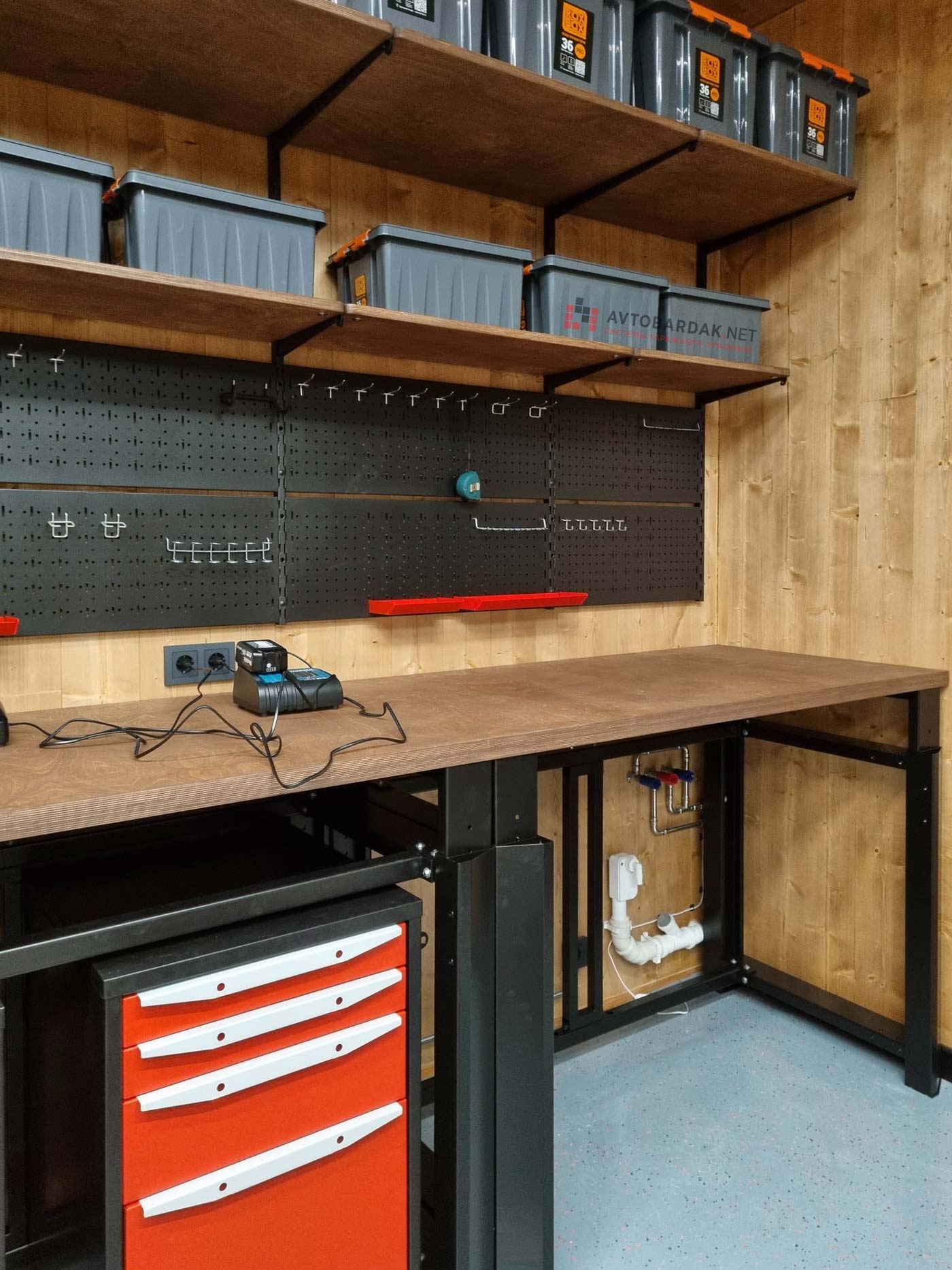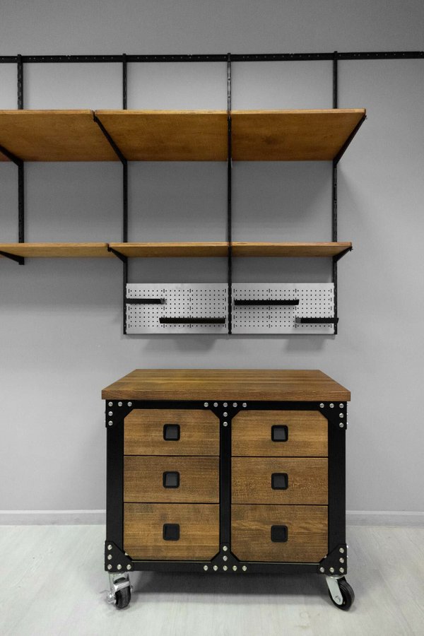 Материалы: влагостойкая фанера толщиной 21 мм, масло Варатан (США), стальные боковины с порошковой покраской в черный цвет.
