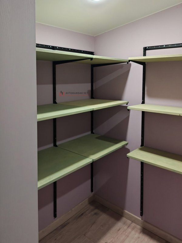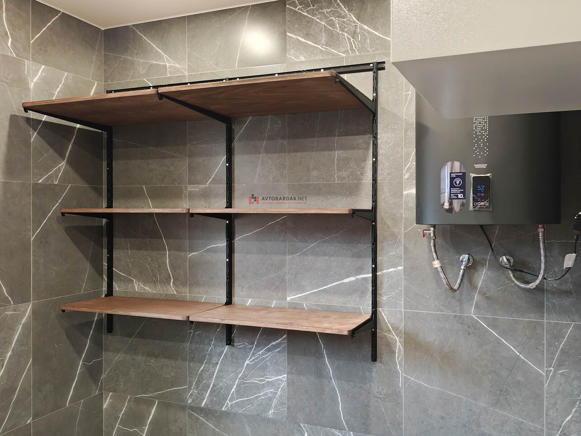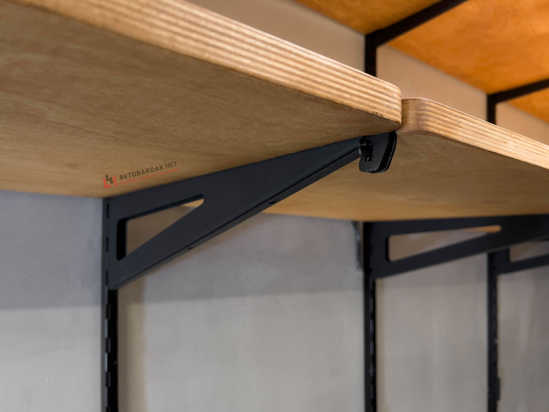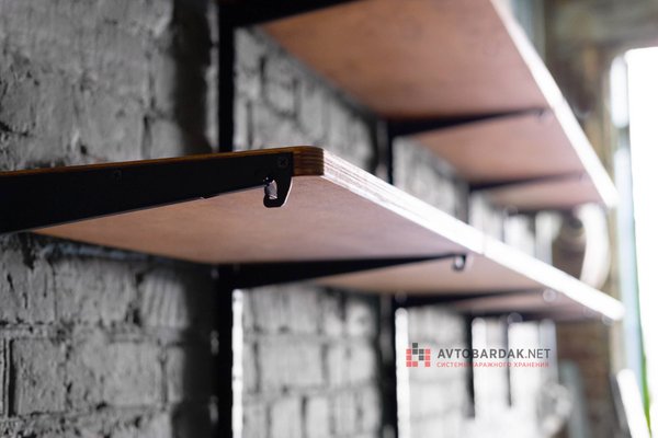 Полка из дерева устанавливается на два кронштейна. Если полки стыкуются между собой в горизонтальном ряду, на месте стыка используется один кронштейн.