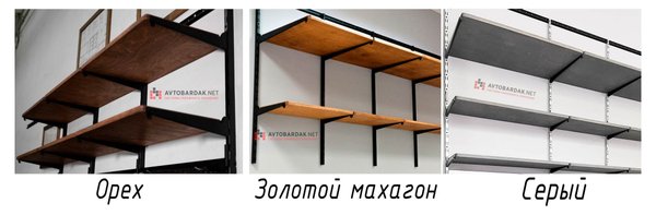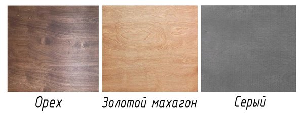 На выбор 6 вариантов цветов (варианты масла, которым покрываются полки): орех (более темный), золотой махагон (более светлый), и цвета под заказ: серый, шалфей, синий, выбеленное дерево.