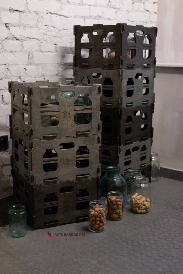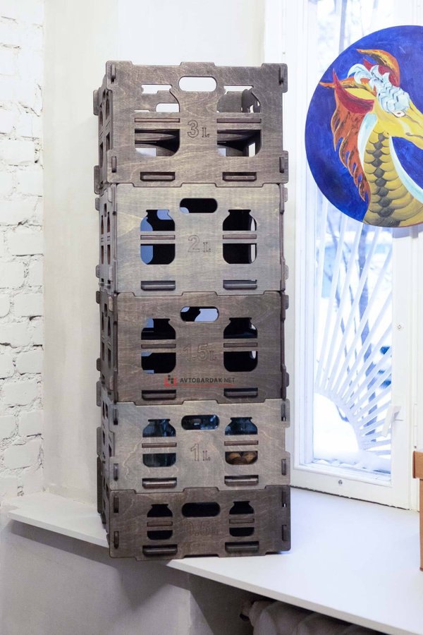 Сверху и снизу ящиков специальные пазы для фиксации, когда ставим их друг на друга. Очень полезно во время переноски, транспортировки и для удобного хранения банок.