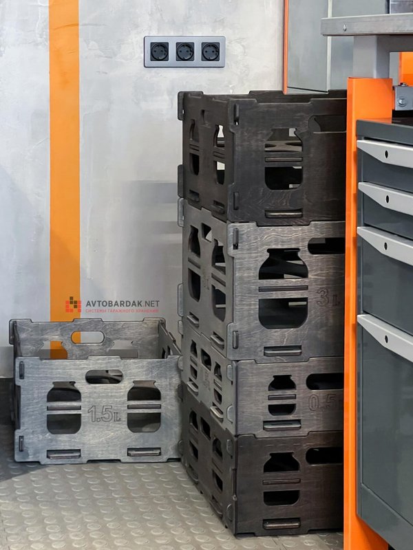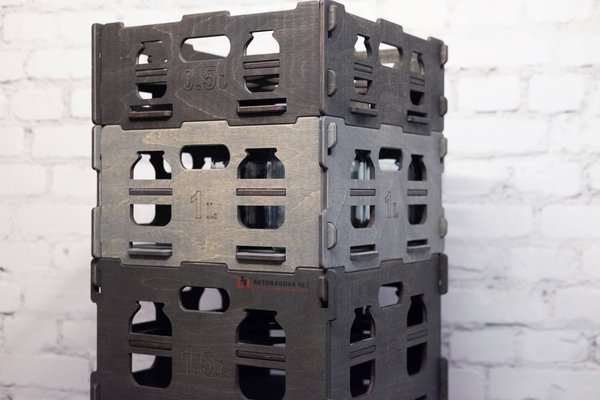 Ящики для банок сборно-разборные. Если требуется освободить место в кладовке и отпала необходимость в хранении, их можно легко разобрать и сложить в плоскую конструкцию. Это позволяет экономить место, что особенно полезно в маленьких помещениях или там, где нужно временно освободить пространство.