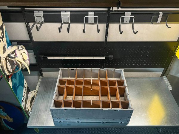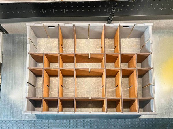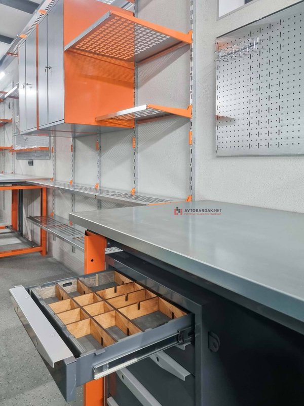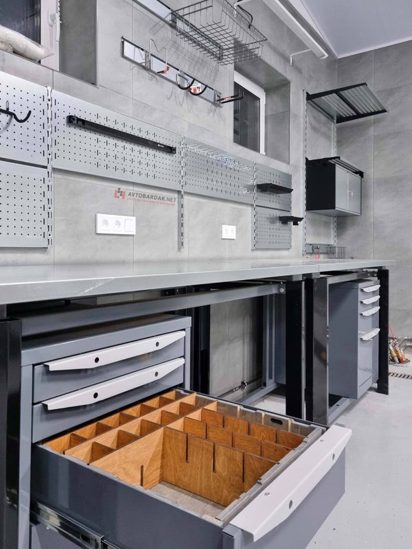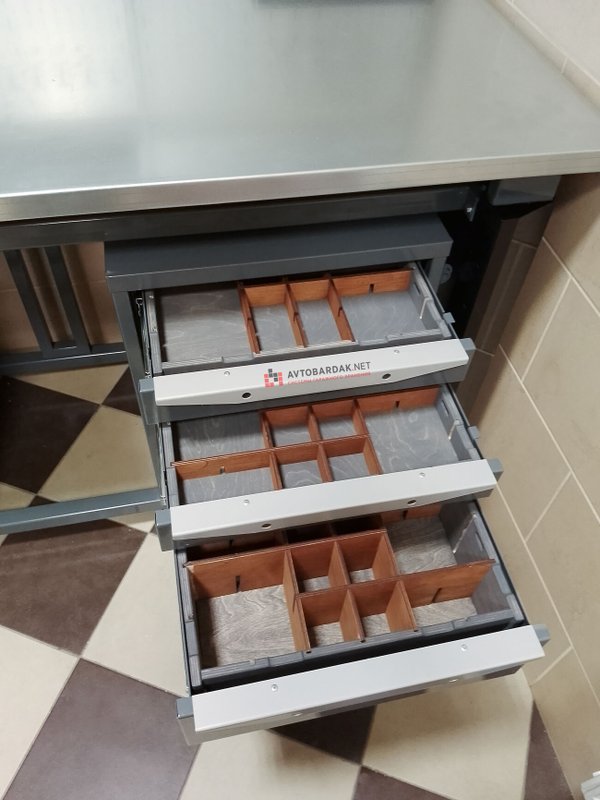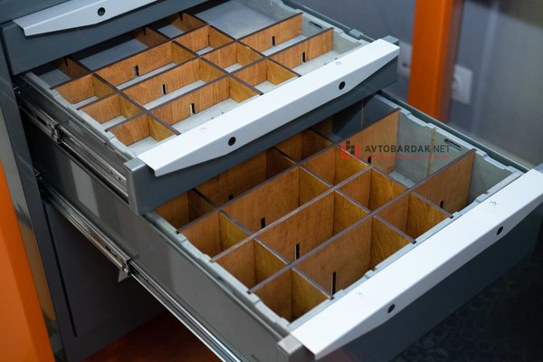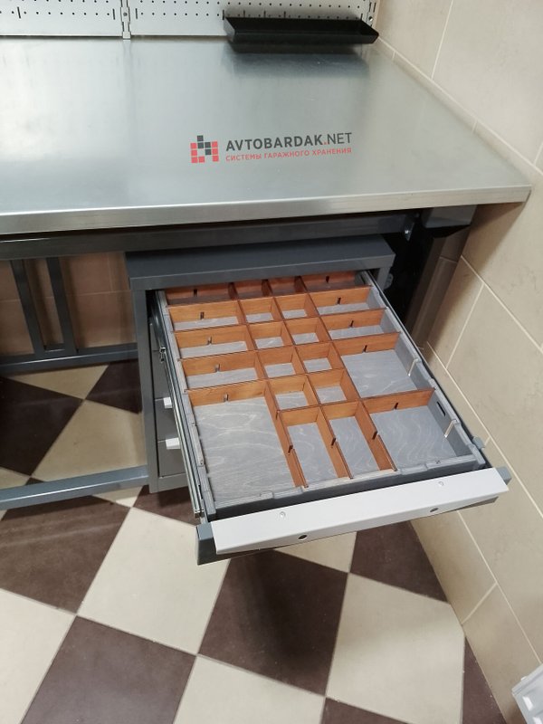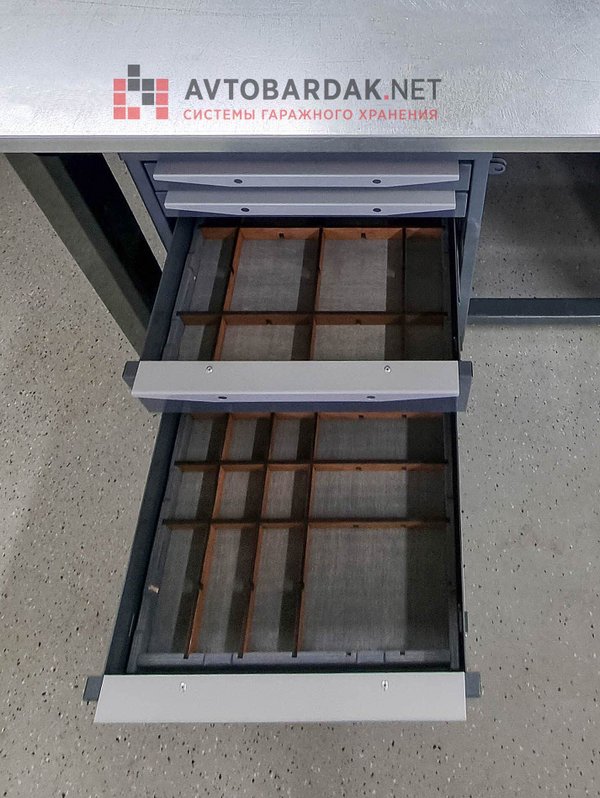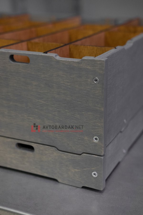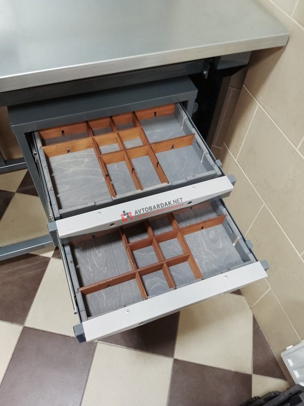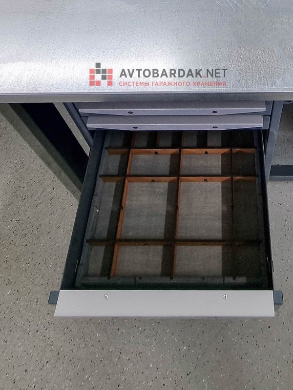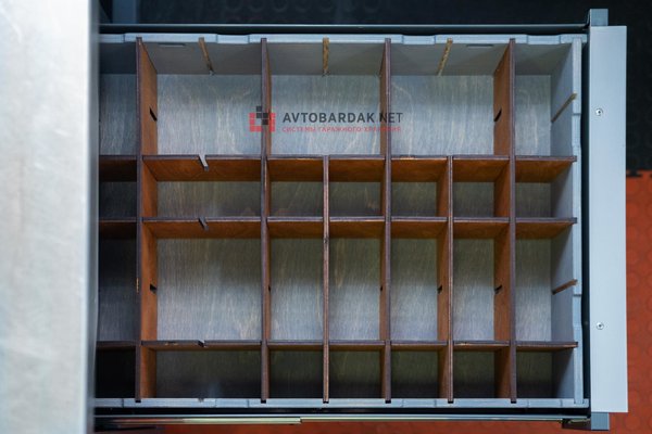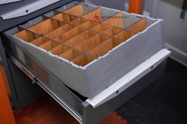 В комплект ящика входит крепеж и 6 внутренних съемных перегородок: 2 перегородки на всю длину, 2 перегородки на всю ширину, 2 перегородки на 2/3 ширины.