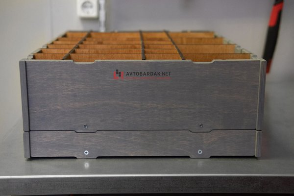 Ящики тщательно отшлифованы и покрыты маслом Варатан (США): внешние стенки и дно серые, внутренние перегородки - золотой махагон.