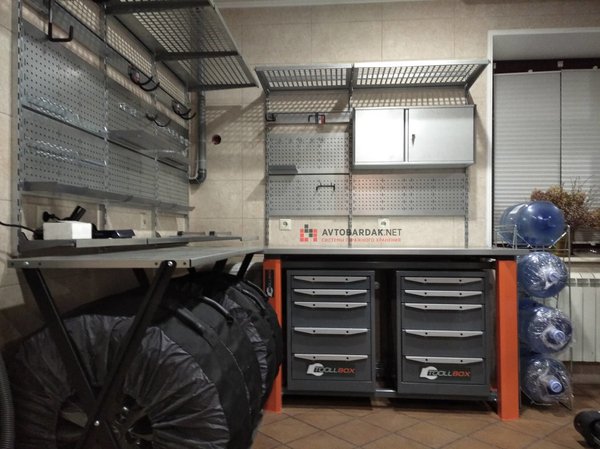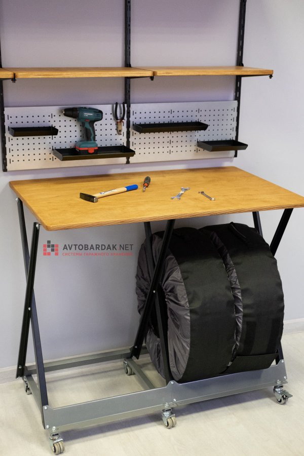 Данный стеллаж можно заказать с простой полкой или с мощной металлической или деревянной столешницей и использовать его в качестве полноценного верстака.