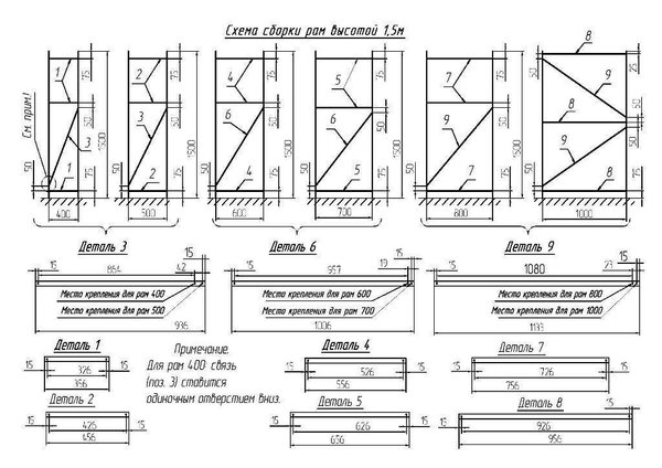 1. Сначала собираем Раму (боковую секцию стеллажа). Рама состоит из вертикальных стоек, горизонтальных и диагональных связей.