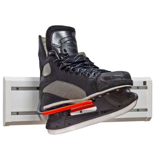 Металлическое крепление с прорезиненной поверхностью для хранения коньков и роликов.