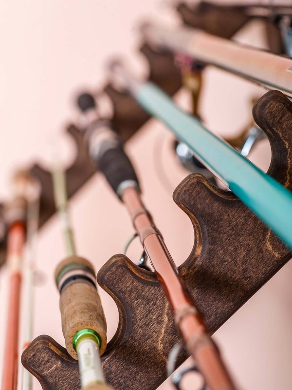 Крепление настенное, а значит освободит место на полу. В креплении предусмотрены округлые пазы, поэтому все удочки лежат аккуратно на своих местах и не касаются друг друга.