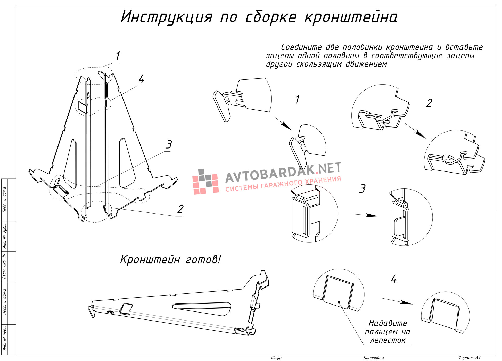 Сборка кронштейна доставляет удовольствие, напоминает щелчок затвора. Инструкция по сборке прилагается.