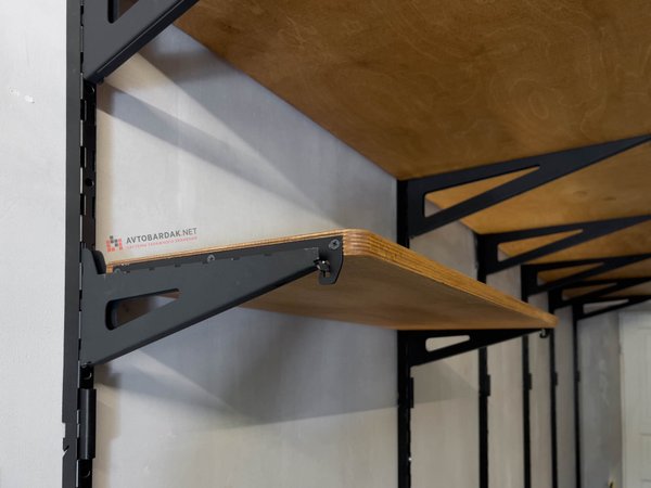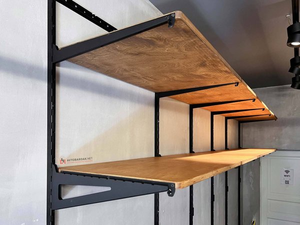 Если вы планируете хранить на полках обычный инвентарь, вам подойдет стандартный кронштейн, если вам нужно хранить тяжелые предметы – используйте усиленный кронштейн.