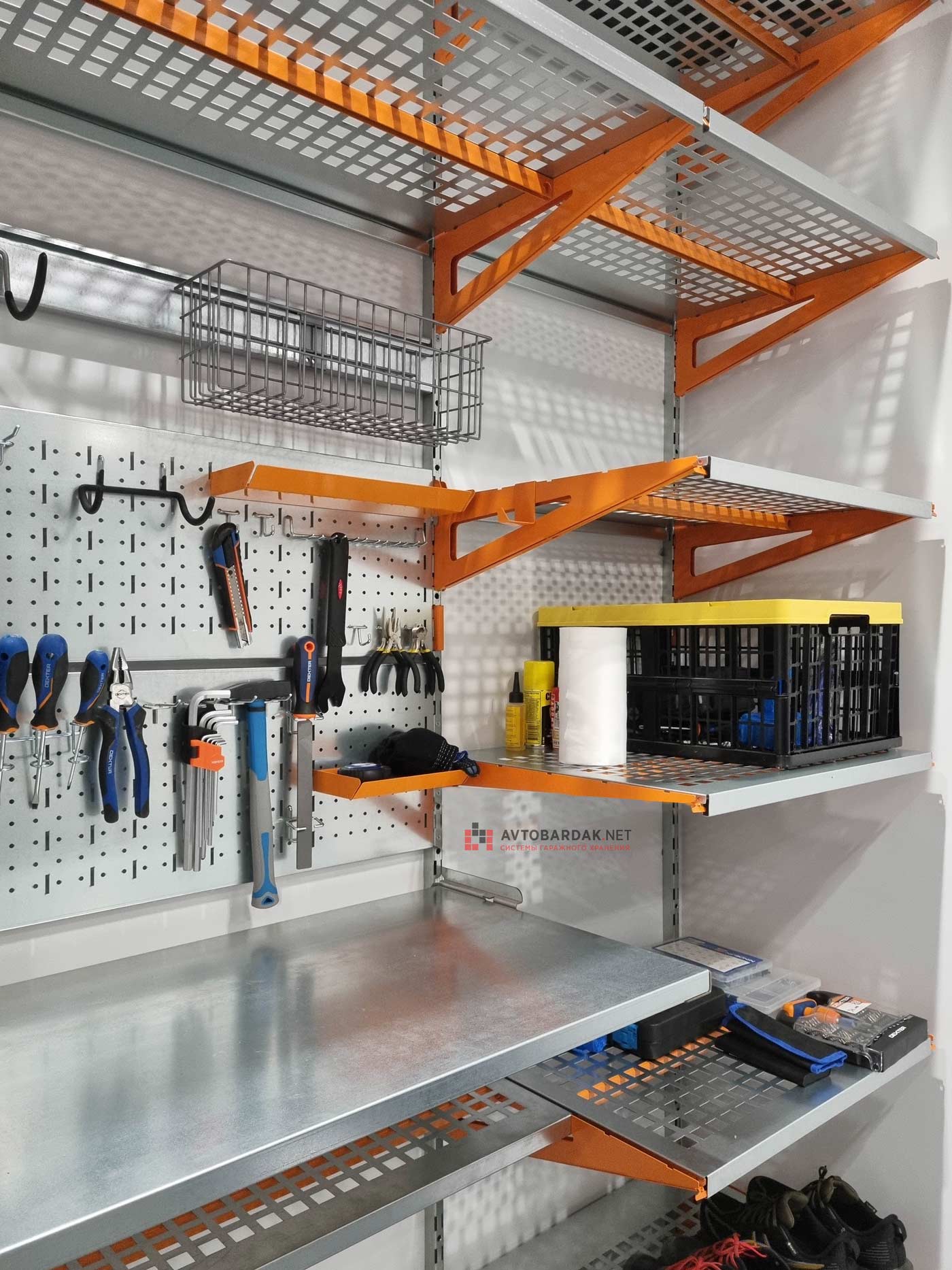 Если вы планируете хранить на полках обычный инвентарь, вам подойдет стандартный кронштейн с нагрузкой до 60 кг. В этом случае вам не понадобится ребро жесткости.