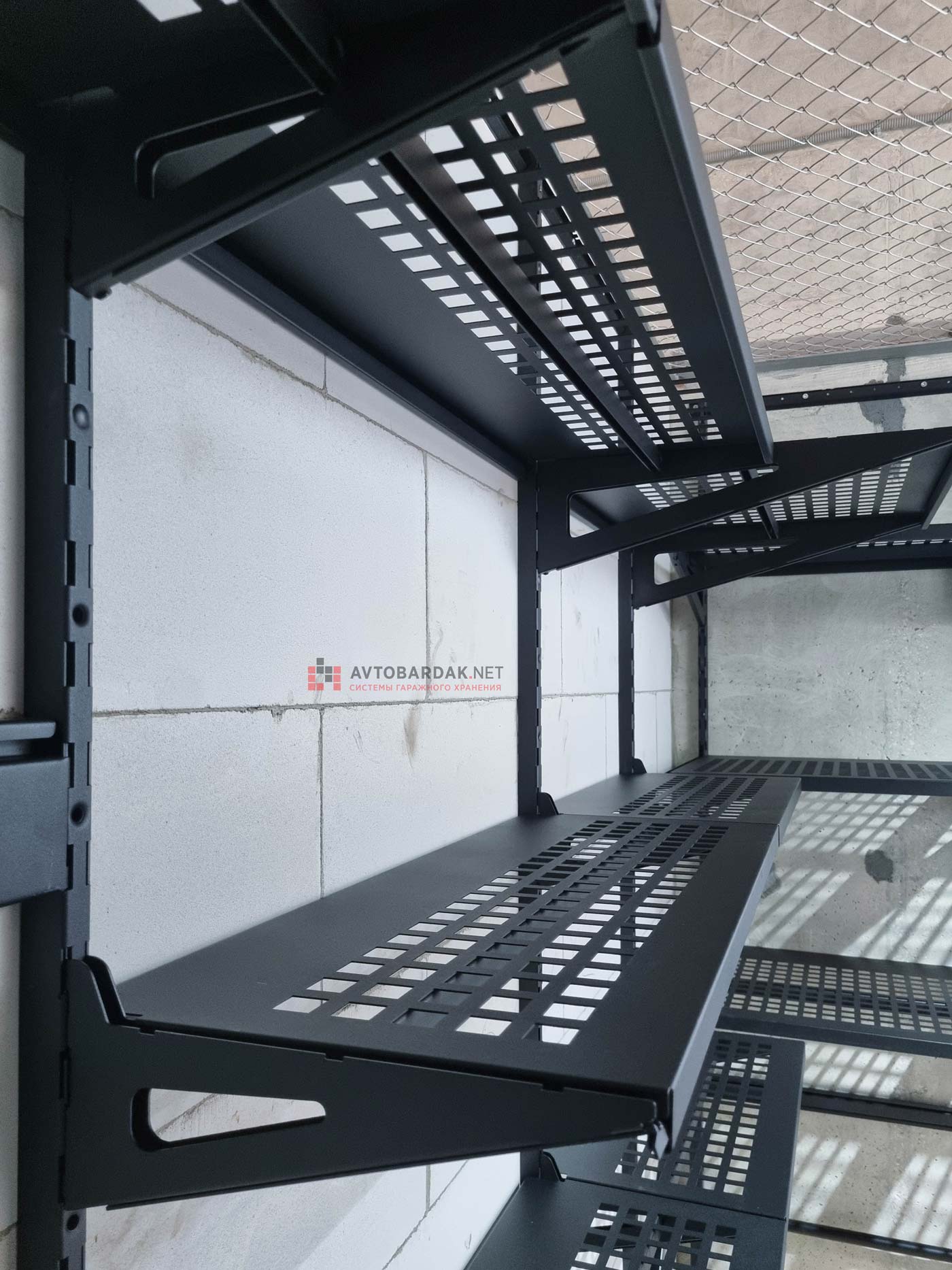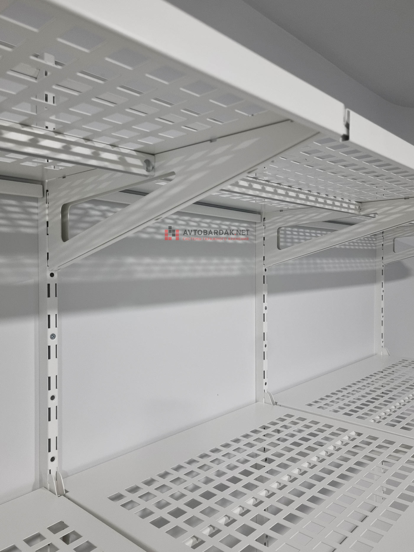 Кронштейн устанавливается в перфорацию вертикальных направляющих. Кронштейн и полки съемные, можно перевешивать выше или ниже по всей высоте вертикальной направляющей с шагом 50 мм.