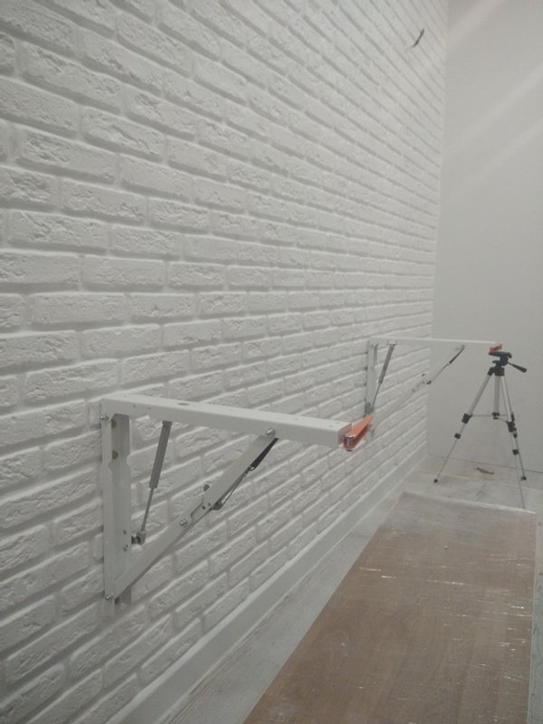 В комплекте пара кронштейнов для откидного стола, анкера для крепления к стене, саморезы для крепления столешницы к кронштейнам.