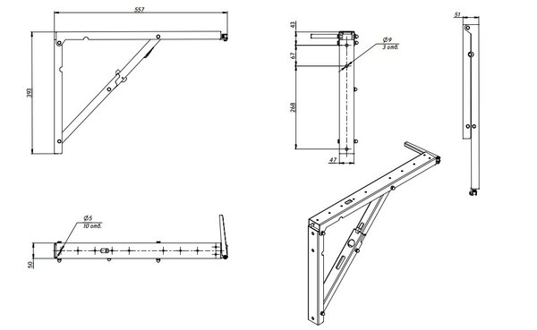 Кронштейн для откидного стола глубиной 600-700 мм:
