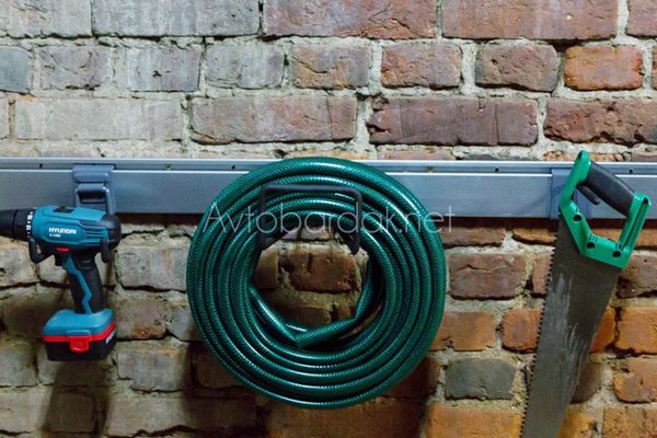 Длина крюка: 190 мм. Высота загиба: 70 мм. Крюк прорезинен, чтобы не повредить шланг и провода.