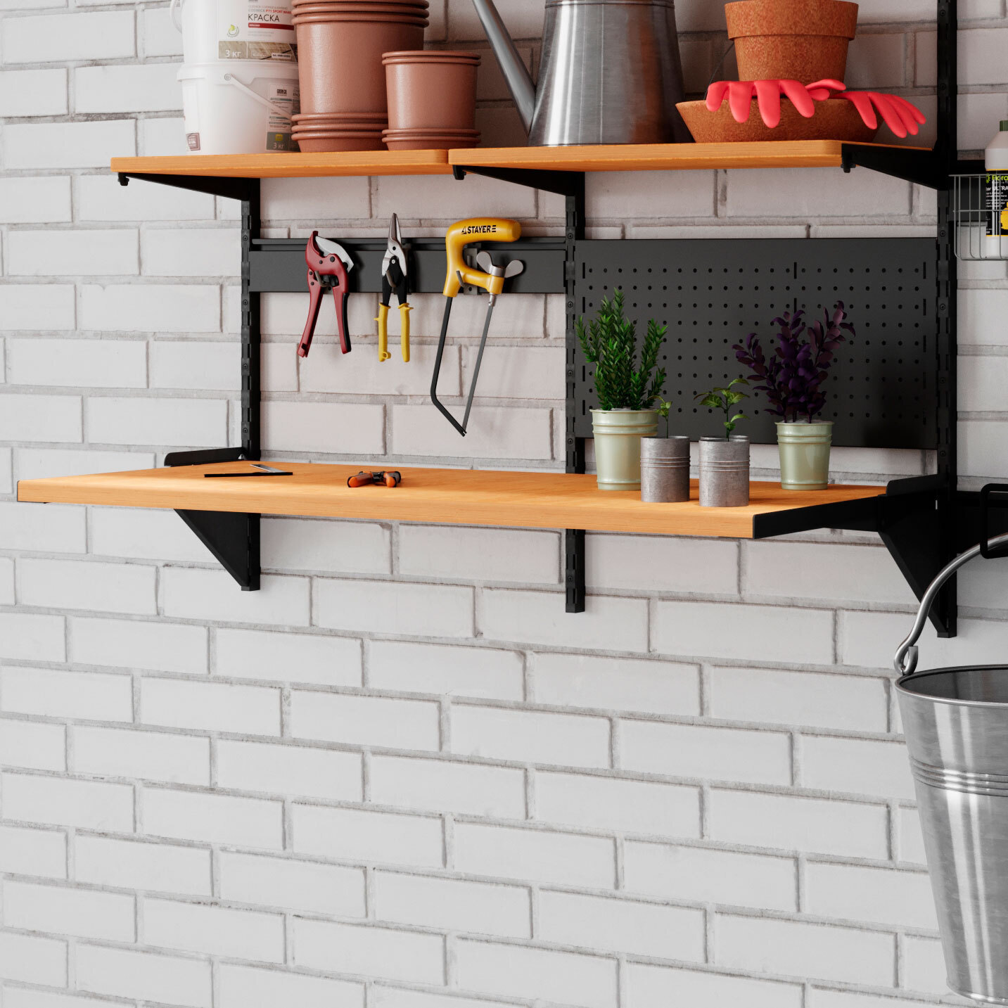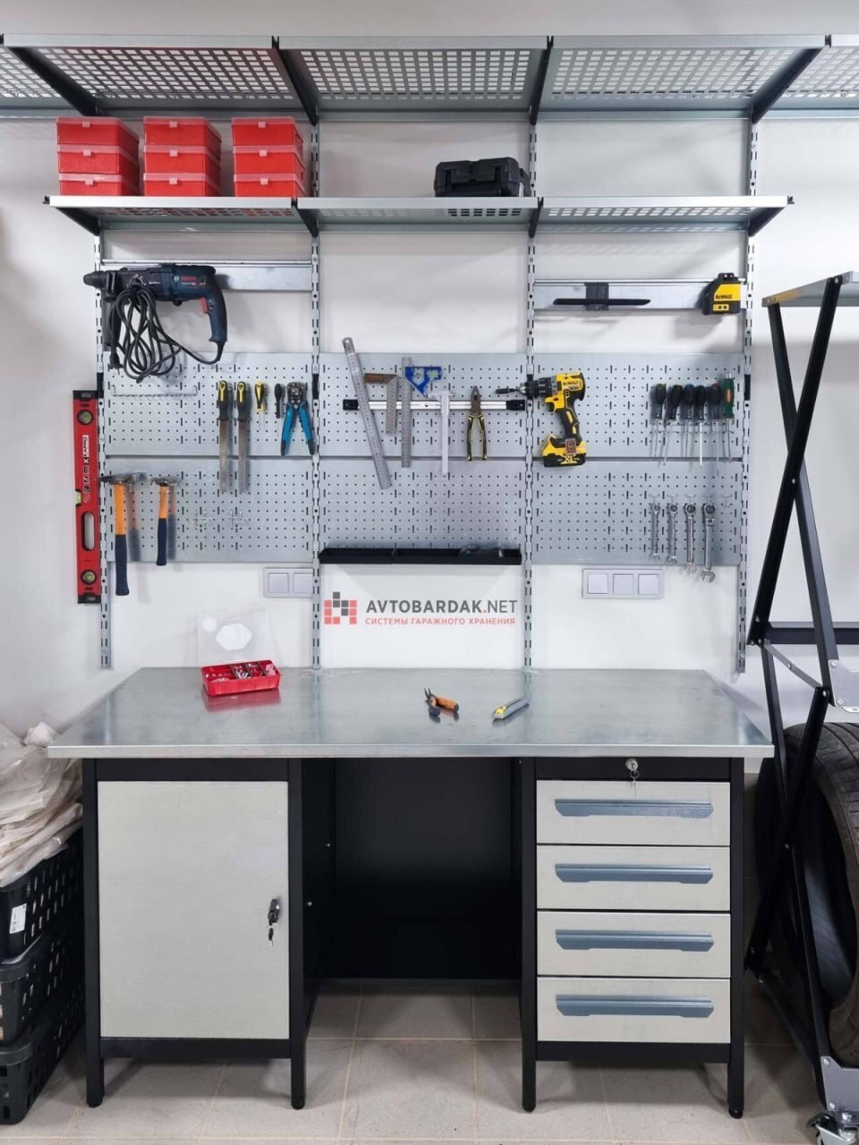Наши проектировщики вместе с вами подберут товары и спланируют вашу идеальную мастерскую: стальные и деревянные верстаки, полки, стеллажи, перфорированные панели, ящики и шкафы для хранения инструментов. У нас есть все для обустройства мастерской.