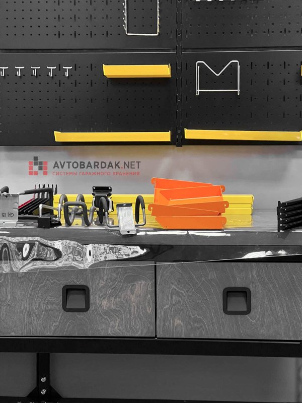 На лотке удобно хранить болты, гайки и др. крепеж: скошенный бортик позволяет легко достать метизы.