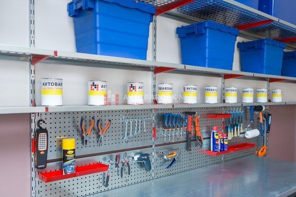 Полки глубиной всего 200 мм - самые узкие полки в нашем ассортименте. Чаще всего используются на нижних ярусах стеллажа, для хранения инструментов (небольшая глубина не мешает размещать их над верстаком), а так же в зонах, где мало места для прохода, но нужно организовать систему хранения.