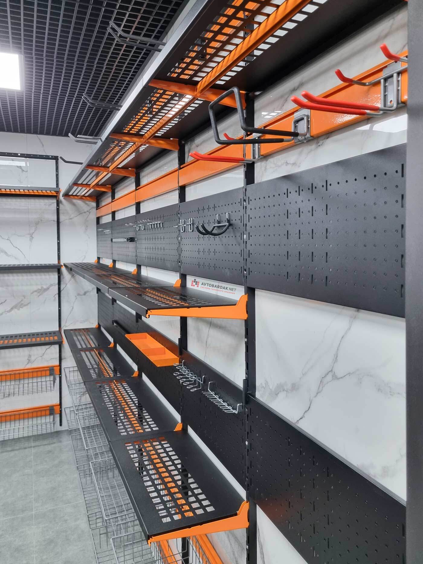 Полка устанавливается на 2 кронштейна длиной 315 мм. В месте стыка полок в ряду необходим 1 кронштейн.