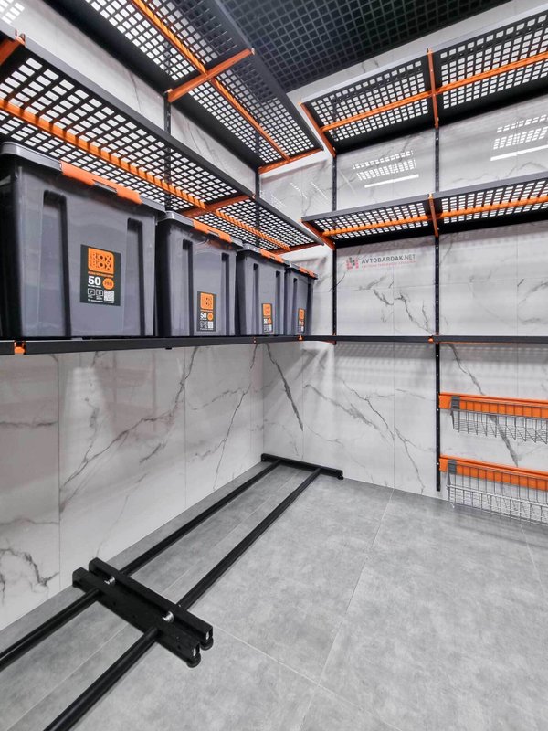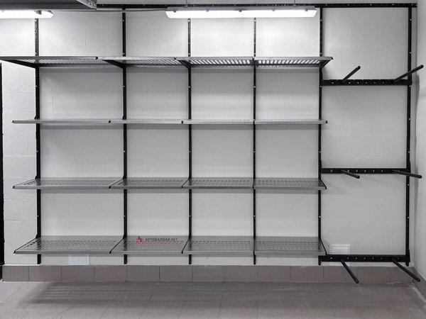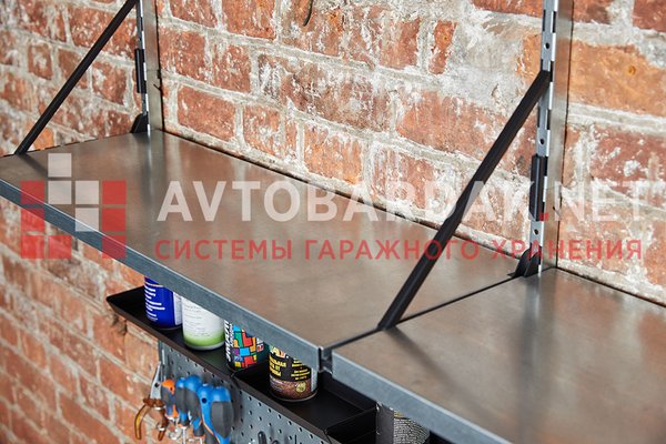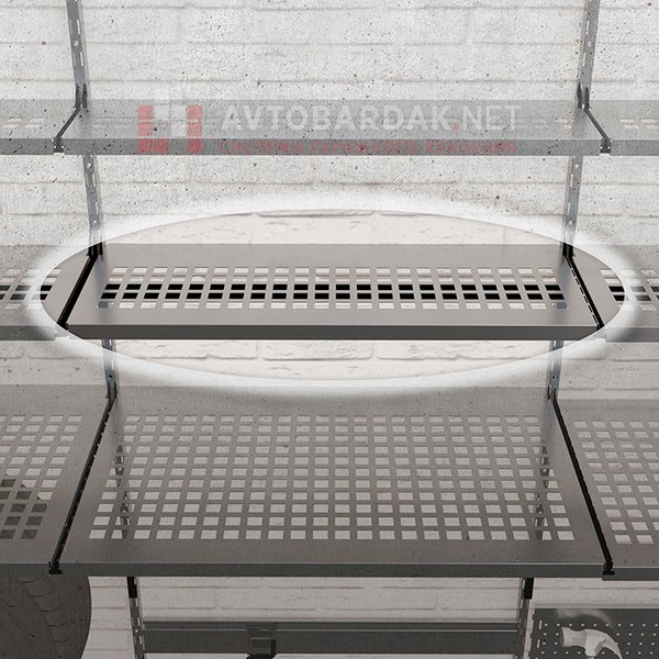 (Для хранения очень тяжелых предметов с точечной нагрузкой более 60 кг, необходимо использовать систему усиления: ребра жесткости и усилители кронштейнов. И их помощью полку можно нагружать до 180 кг).