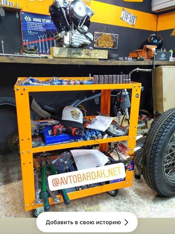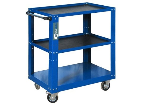 Открытая металлическая тележка с 3 полками для инструментов на колесиках