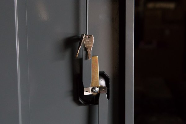 Шкаф мощный. Рама шкафа из профильной трубы. Стенки — стальной лист толщиной 0,7 мм. Задняя стенка перфорированная. Замок.