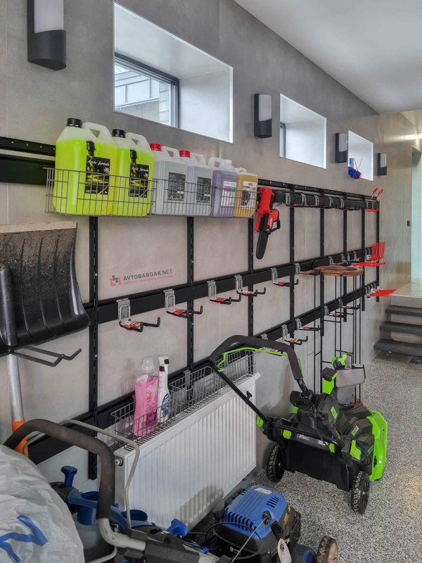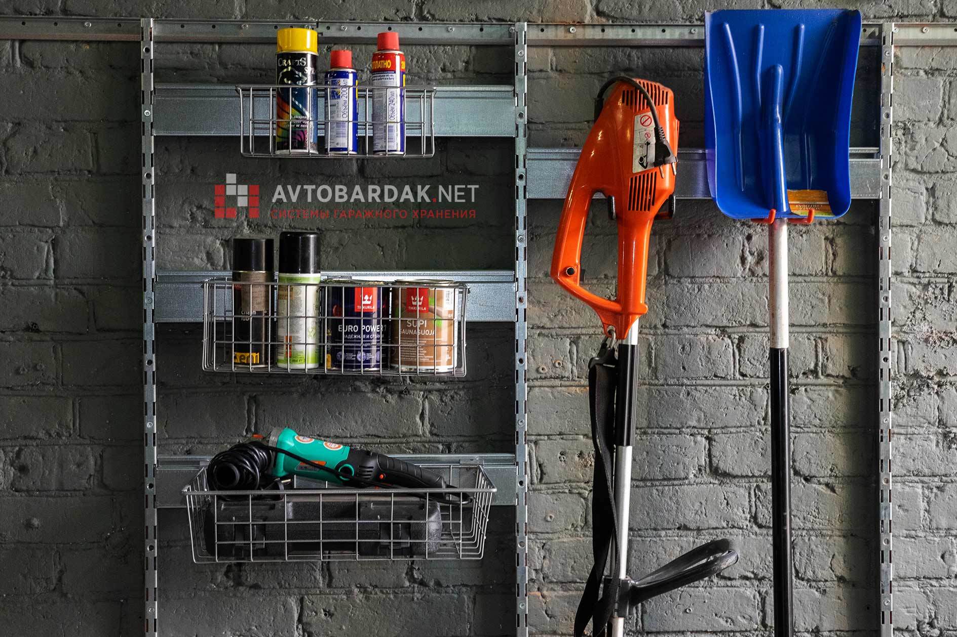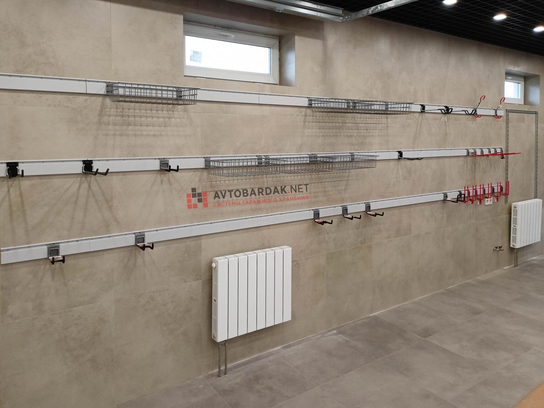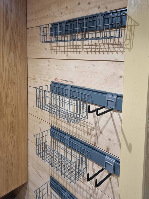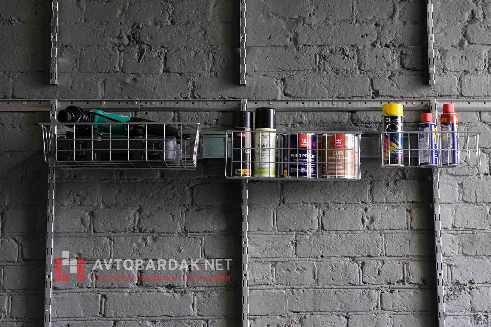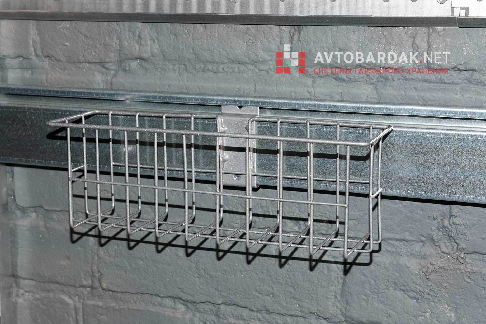 Металлический лоток с помощью специальных зацепов подвешивается на рейлинги (в нашем ассортименте 3 варианта рейлингов: из оцинкованной стали, пластиковые, из алюминиевого сплава). Также лоток можно прикрепить к стене без рейлинга (предусмотрены отверстия для крепления к стене), но крепление к рельсу более надежно, т.к. нагрузка равномерно распределяется по направляющей.