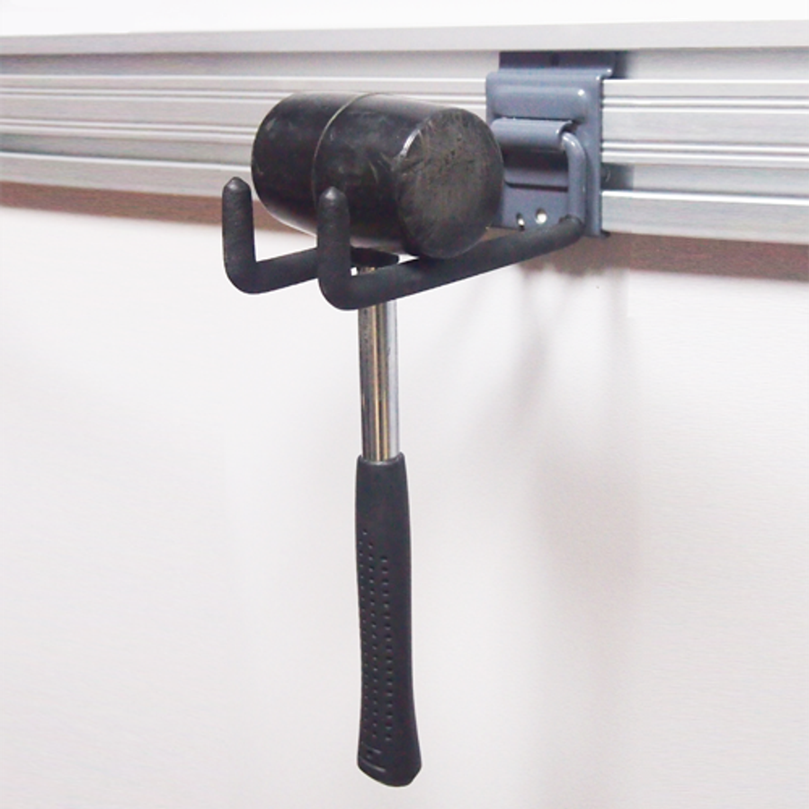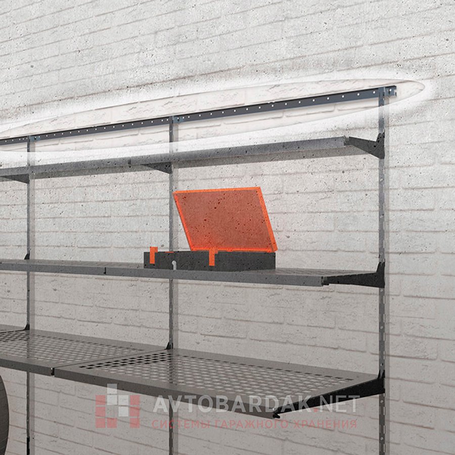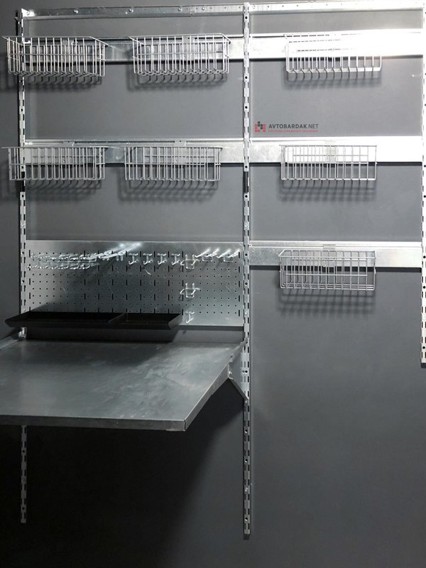 Металлический лоток с помощью специальных зацепов подвешивается на рейлинги (в нашем ассортименте 3 варианта рейлингов: из оцинкованной стали, пластиковые, из алюминиевого сплава). Также лоток можно прикрепить к стене без рейлинга (предусмотрены отверстия для крепления к стене), но крепление к рельсу более надежно, т.к. нагрузка равномерно распределяется по направляющей.