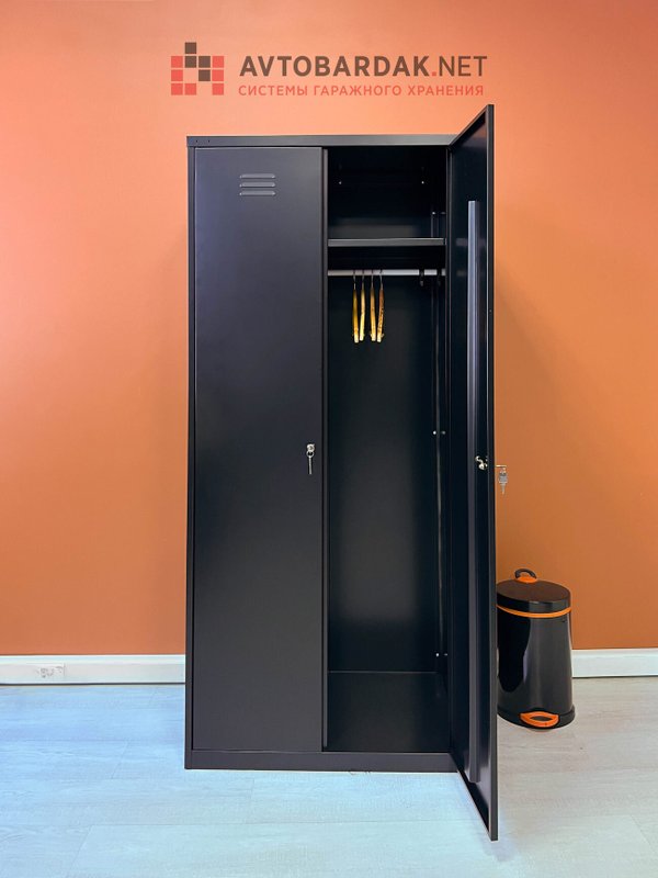 Черный металлический шкаф для хранения одежды. Варианты длины: 600 и 800 мм.