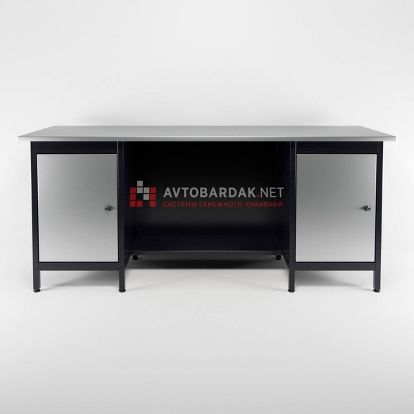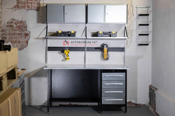 Верстак с полкой-стенкой между двумя тумбами (за исключением верстаков, когда тумбы примыкают друг к другу)