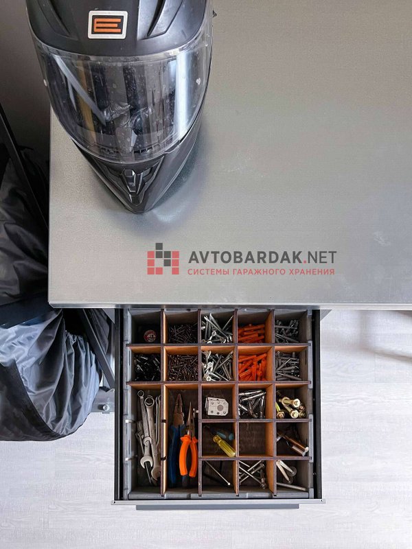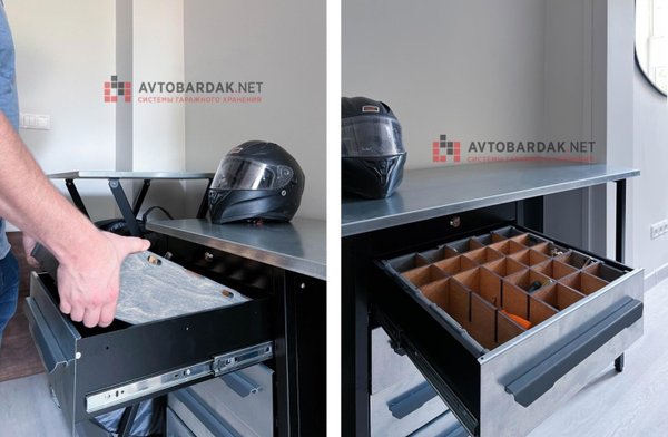 Внимание! Если верстак длиной 1205 мм с 2-мя тумбами (тумбы примыкают друг к другу), обязательно ознакомьтесь с особенностями сборки такой конфигурации по ссылке.Все металлические верстаки серии Сириус с тумбами с выдвижными ящиками можно доукомплектовать или резиновыми ковриками или специальными деревянными ящиками с перегородками. Ящики с делителями пространства - в них удобно хранить крепеж или инструменты.