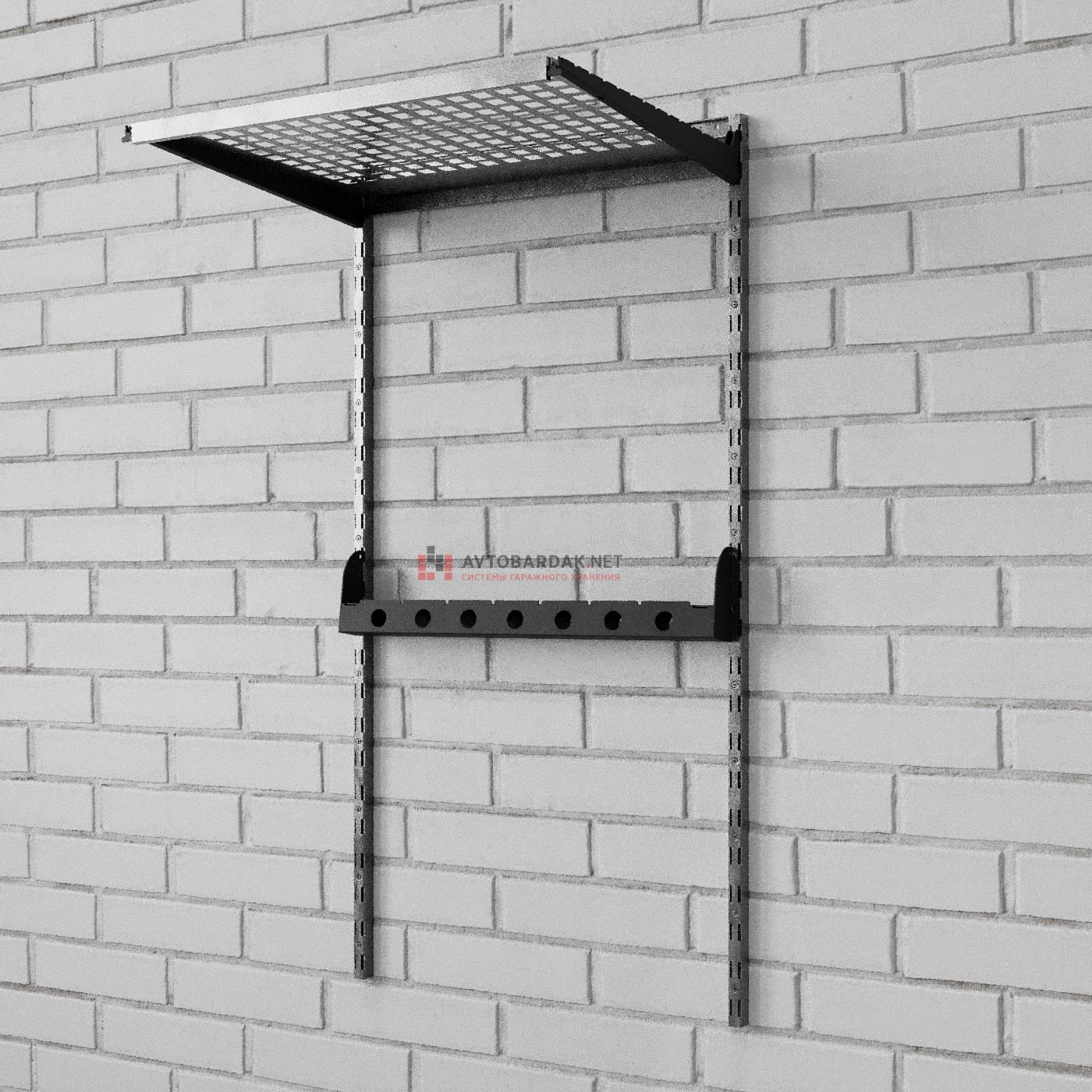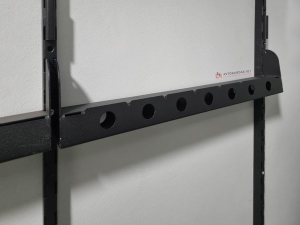 Для крепления модуля необходимо приобрести вертикальные и горизонтальные направляющие. Для подвеса инвентаря нужны трубы-кронштейны.