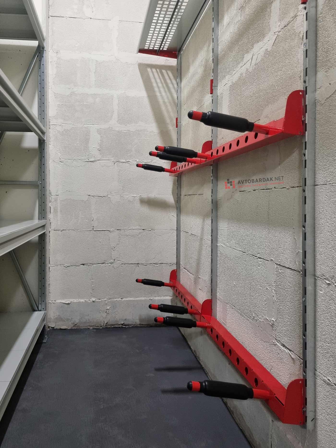 Универсальный съемный модуль настенной системы хранения ИФ для подвеса шин, велосипедов, багажных боксов, лыж, сноубордов и других длинномеров на стене.