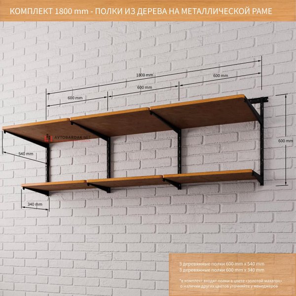 Два ряда полок из дерева на металлической раме. Длина 1800 мм, высота 600 мм (набор №46)