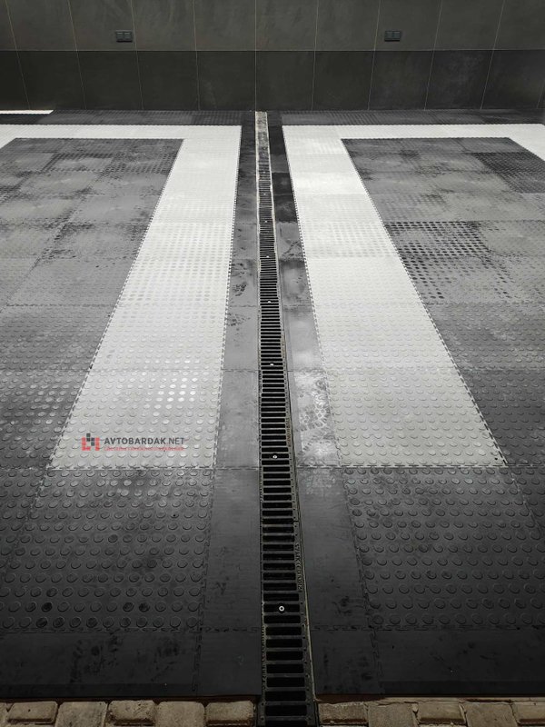 Цвет серый (также в нашем ассортименте можно приобрести напольные плитки ПВХ черного, бежевого, зеленого, синего, красного и оранжевого цвета), антискользящая поверхность, фактура в виде монетки и ребристая.