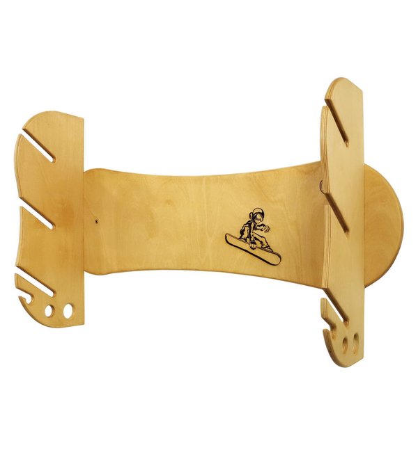 Подставка для сноубордов поставляется в разборном виде. В комплекте мебельные саморезы для сборки (все отверстия размечены). 2 отверстия диаметром 5,2 мм для крепления стойки к стене. С учетом толщины фанеры, рекомендуем использовать 2 самореза 5х70.