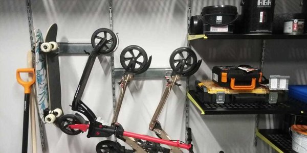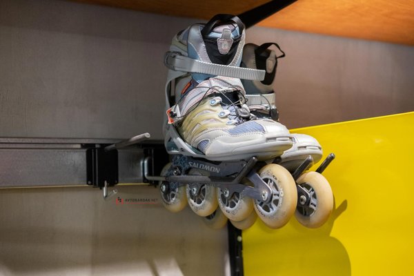 В фотогалерее крюки с самокатами на рейлингах с зацепами за вертикальные направляющие.