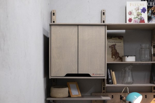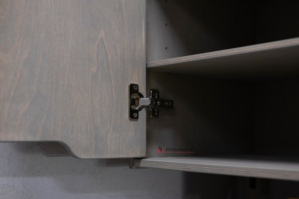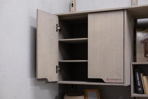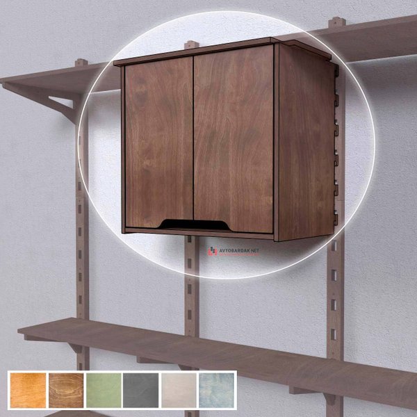 Шкаф изготавливается из влагостойкой березовой фанеры марки ФК (марка фанеры с экологичным клеевым составом, предназначенная для использования в жилых помещениях) с покрытием маслом Варатан. Несколько базовых цветов всегда в наличии (орех, золотой махагон), под заказ мы сможем покрасить систему в цвет из палитры. В свойствах вариантов вы можете выбрать различные цвета корпуса и дверок. Так же вы можете выбрать цвет полки и кронштейна - стенки по вашему желанию.