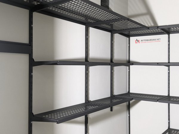 Навесные металлические полки выдерживают до 60 кг равномерно распределенной нагрузки. Или до 180 кг при установке системы усиления на полку. Полки могут быть 600 мм или 800 мм по длине. По глубине полки делятся на 200 мм, 315 мм и 520 мм.