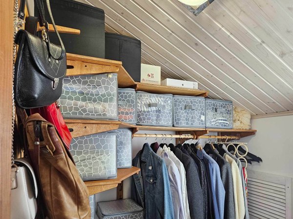 Рабочая зона 4,4 м в длину (2 рабочих места: три верстака, ящики и перфопанели для инструментов). Раковину из нержавейки с смесителем и сифоном, слив в полу устанавливал местный сантехник, мы только подготовили вырез в столешнице под раковину. По этой же стене в углу у въездных ворот место для керхера, инструмент для уборки, корзины для химии. Центральная стена: 2 шкафа для хранения одежды (боковины покрашены в черный цвет), кронштейн для вертикального хранения 2-х велосипедов, 2 полки для колес, кронштейны для хранения длинномеров. Стена справа от въездных ворот: 3 окна, крюк для хранения стремянки (ближе к воротам). Металлические перфорированные полки, усиленные ребрами жесткости по двум стенам. Поэлементная спецификация По ссылке отображается первая страница товарной спецификации. Для просмотра всей сметы целиком, нажмите "Скачать" в левом верхнем углу документа.