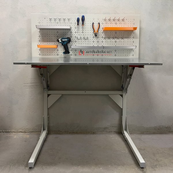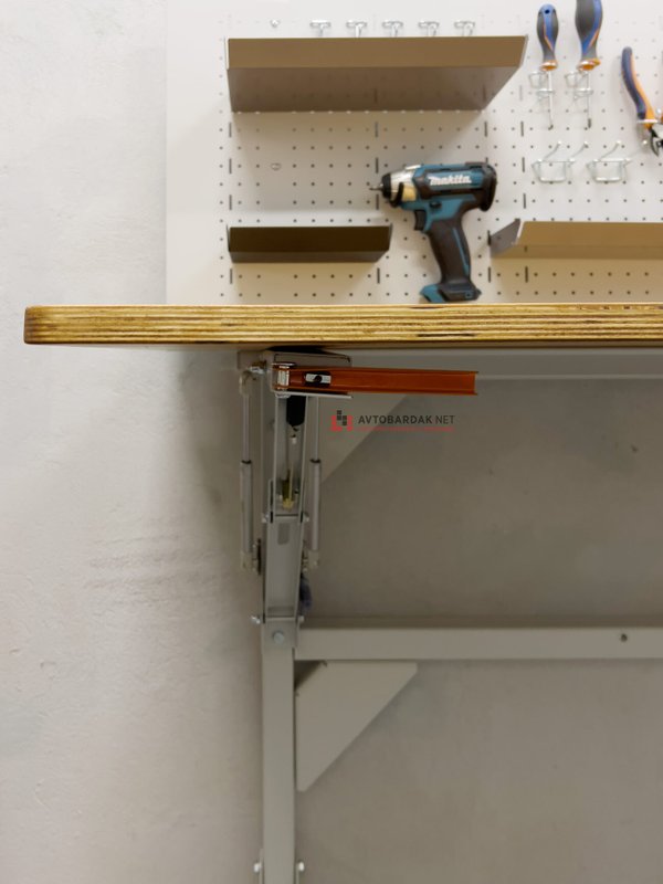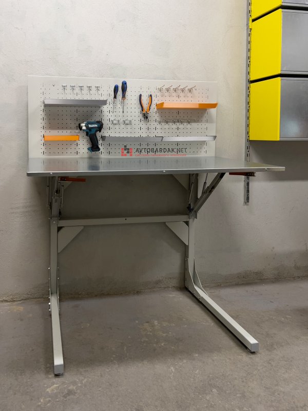 Верстак со складной столешницей, а значит подойдет для пространств, где каждый сантиметр на счету. Например, вы можете расположить такой верстак в гараже: в сложенном виде он не будет мешать парковке автомобиля. Вы можете экономить все пространство столешницы.