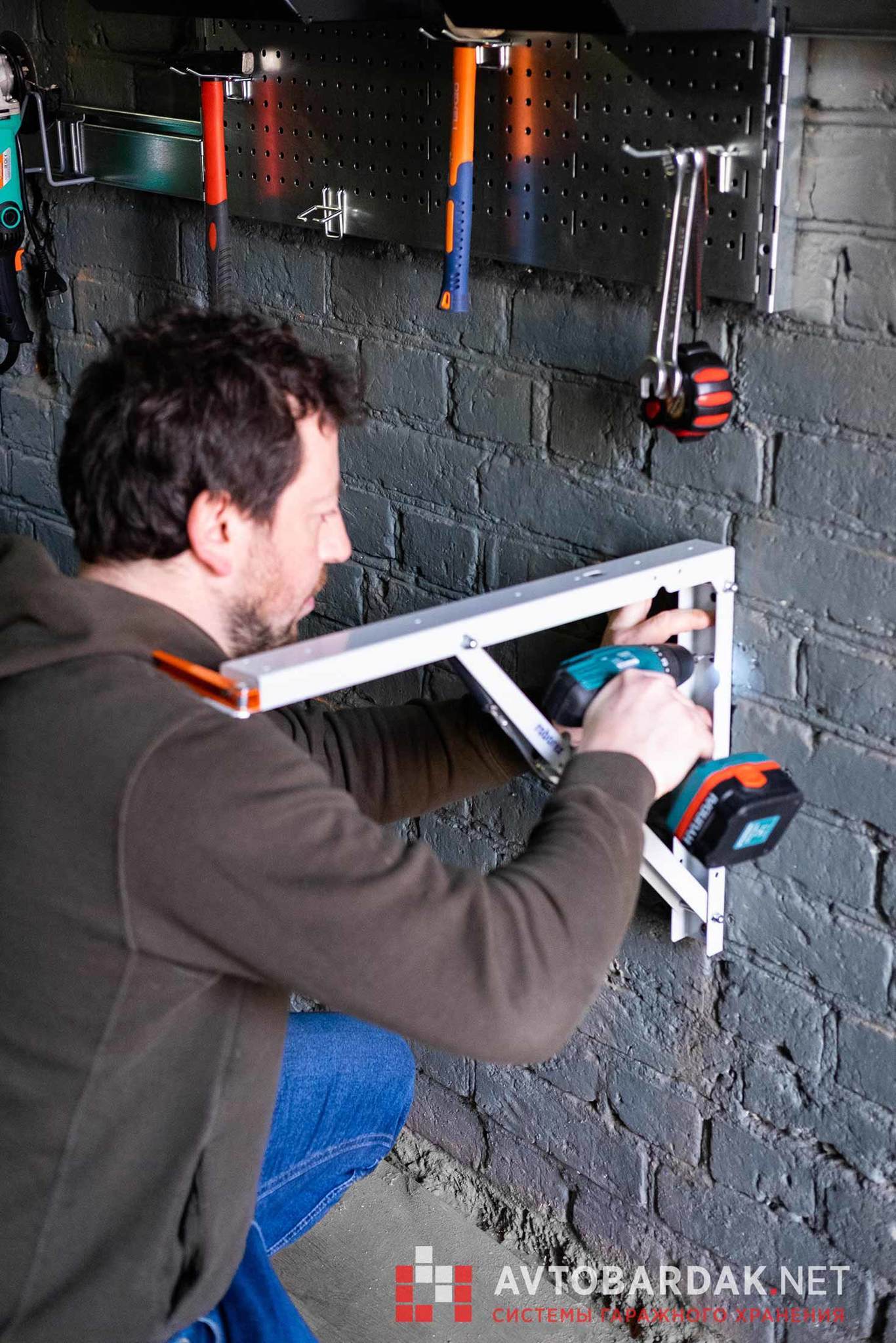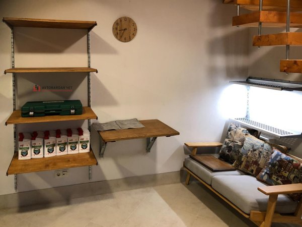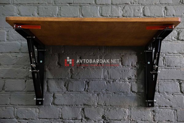 Удобство кронштейна для откидного стола в том, что не нужно наклоняться, чтобы сложить стол: достаточно просто нажать на ручки и, придерживая столешницу, опустить ее вниз.